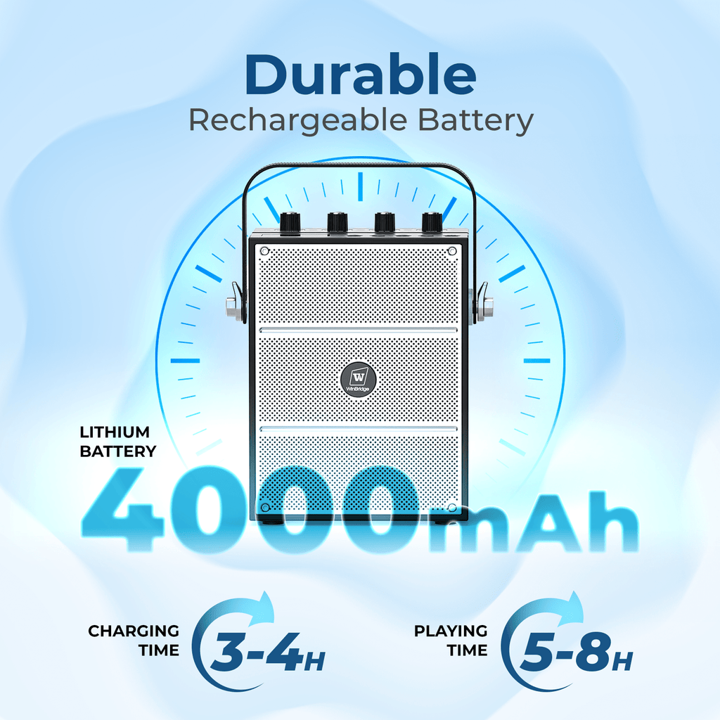 • Long-Lasting Battery: Speaker built-in 4000mAh high-capacity battery ensures up to 5 hours of continuous playback, perfect for extended use.The handheld microphones have built-in lithium batteries with capacities of 1500mAh, respectively, allowing for up to 15 hours operation time.