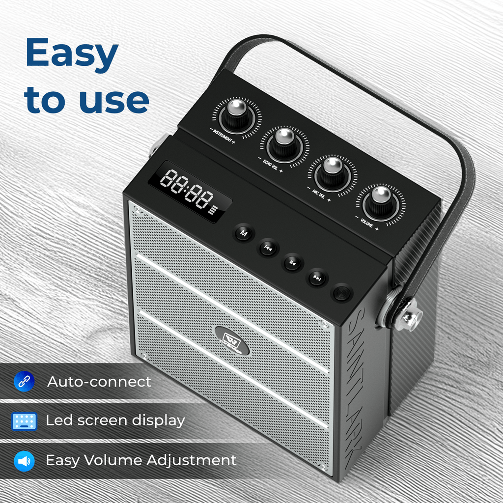• User-Friendly Controls: Features an LED display and four distinct volume knobs to separately adjust instrument volume, reverb volume, microphone volume, and overall system volume.